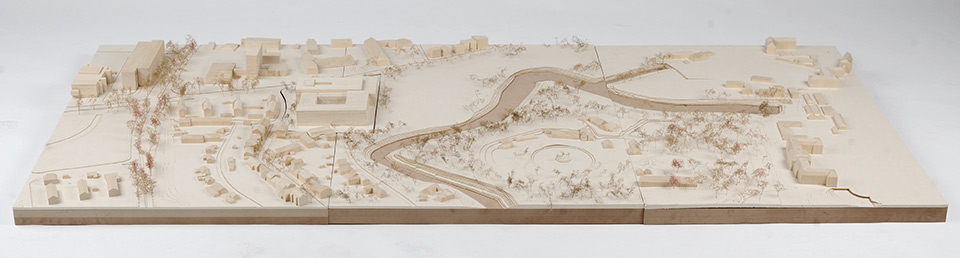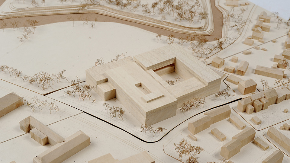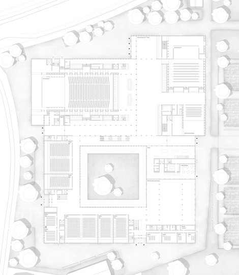Der Entwurf schlägt ein Musik- und Kongressgebäude vor, welches sich als Konglomerat der einzelnen Institutionen, bestehend aus der Westfälischen Wilhelms-Universität Münster (WWU), der Westfälischen Schule für Musik (WSfM) sowie dem Sinfonieorchester Münster (SOM) versteht. Die Form wirkt urban, bildet Vorplätze zu einzelnen Gebäudeteilen und definiert somit die Eingänge der einzelnen Institutionen. Durch die dichte Bebauung des Planfeldes kann die Gebäudehöhe gering gehalten und sich somit den First-höhen der vorhandenen Bebauungen angepasst werden.